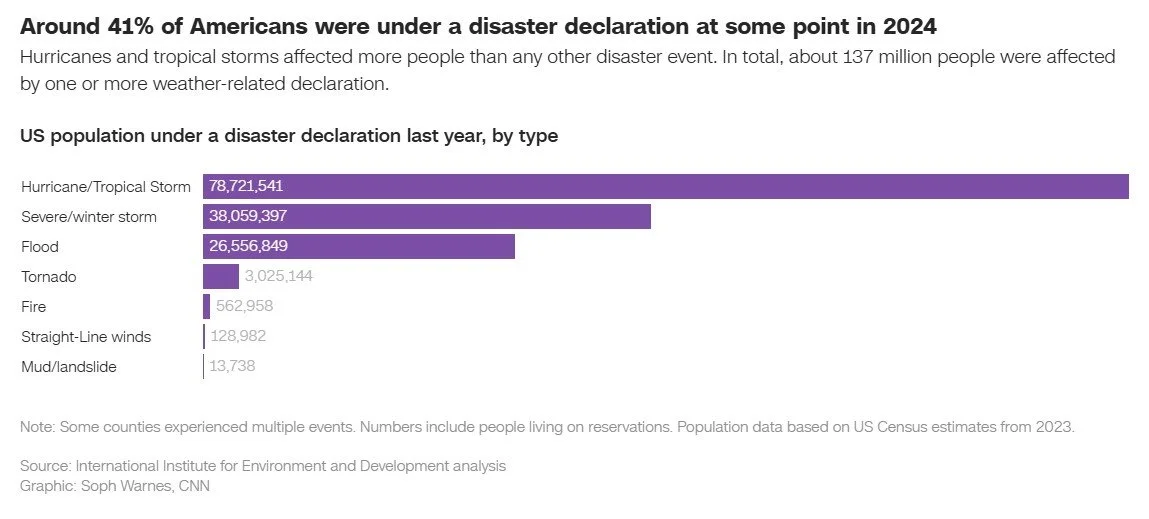I conducted analysis of 30 years of data on extreme weather disasters from the U.S. Federal Emergency Management Agency (FEMA). My research found that weather-related disasters are becoming more frequent in the U.S., with almost half of the American population living under a disaster declaration at some point in 2024.